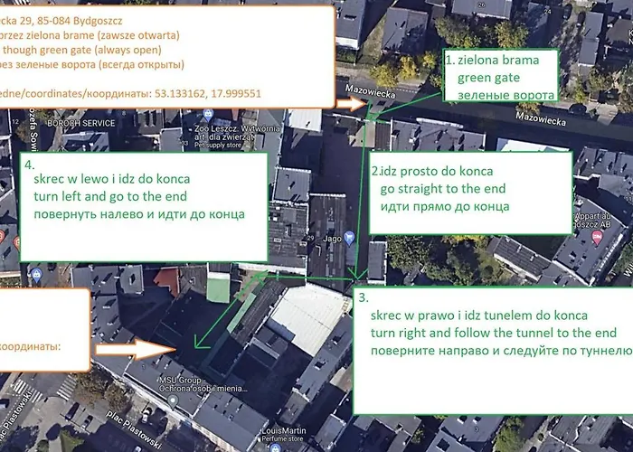 Sacred Heart of Jesus Church знаходиться на відстані 5 хвилин ходьби, а Університет дизайну "Тун-Фан" - на відстані лише 14 хвилин ходьби. За 15 хвилин ви зможете спокійно прогулятися до центру Бідгоща. За декілька хвилин їзди від Mazowiecka 29 Apartment B Self Check-In знаходиться Старе Місто.